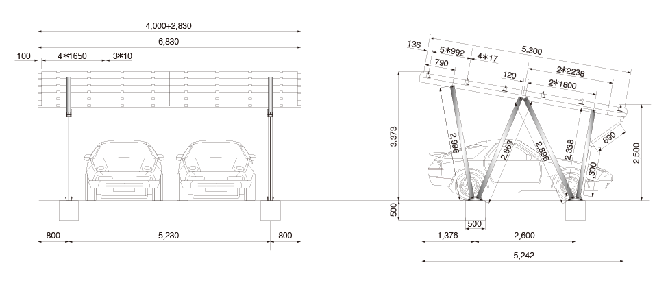 アルミ製カーポートは、住宅用・産業用どちらにも適しています。 高強度設計の為、暴風雪地域にも設置可能です。 施工性に優れたプリアッセンブルド支柱を使用しているため、 大幅に施工時間が削減できます。